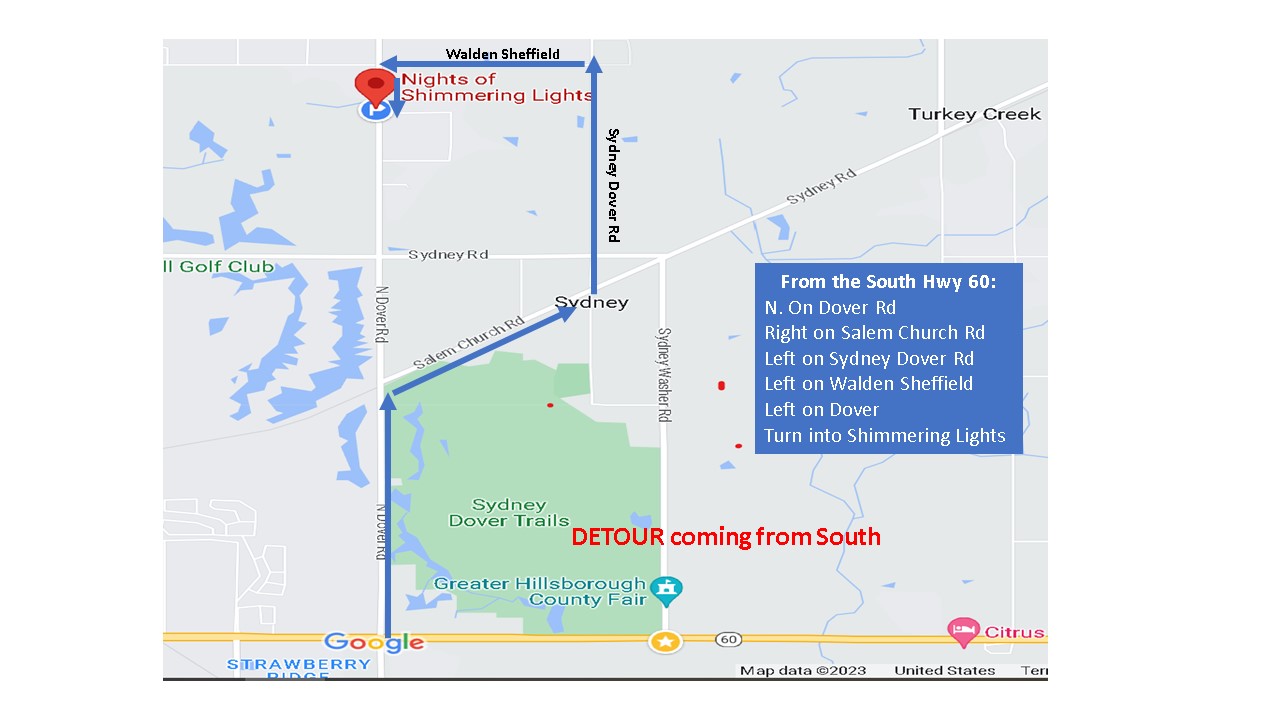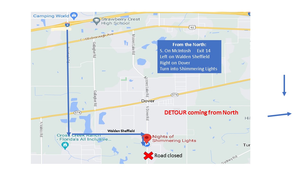 Note: The county has shut down a small portion of Dover Road just South of us. The road is closed except for local access from Sept. 27 to Oct. 24. We have identified alternate routes coming from the North (I-4) or the South (Hwy 60). The Northern access from Hwy 574/MLK is open to our event by coming through the local access signs.