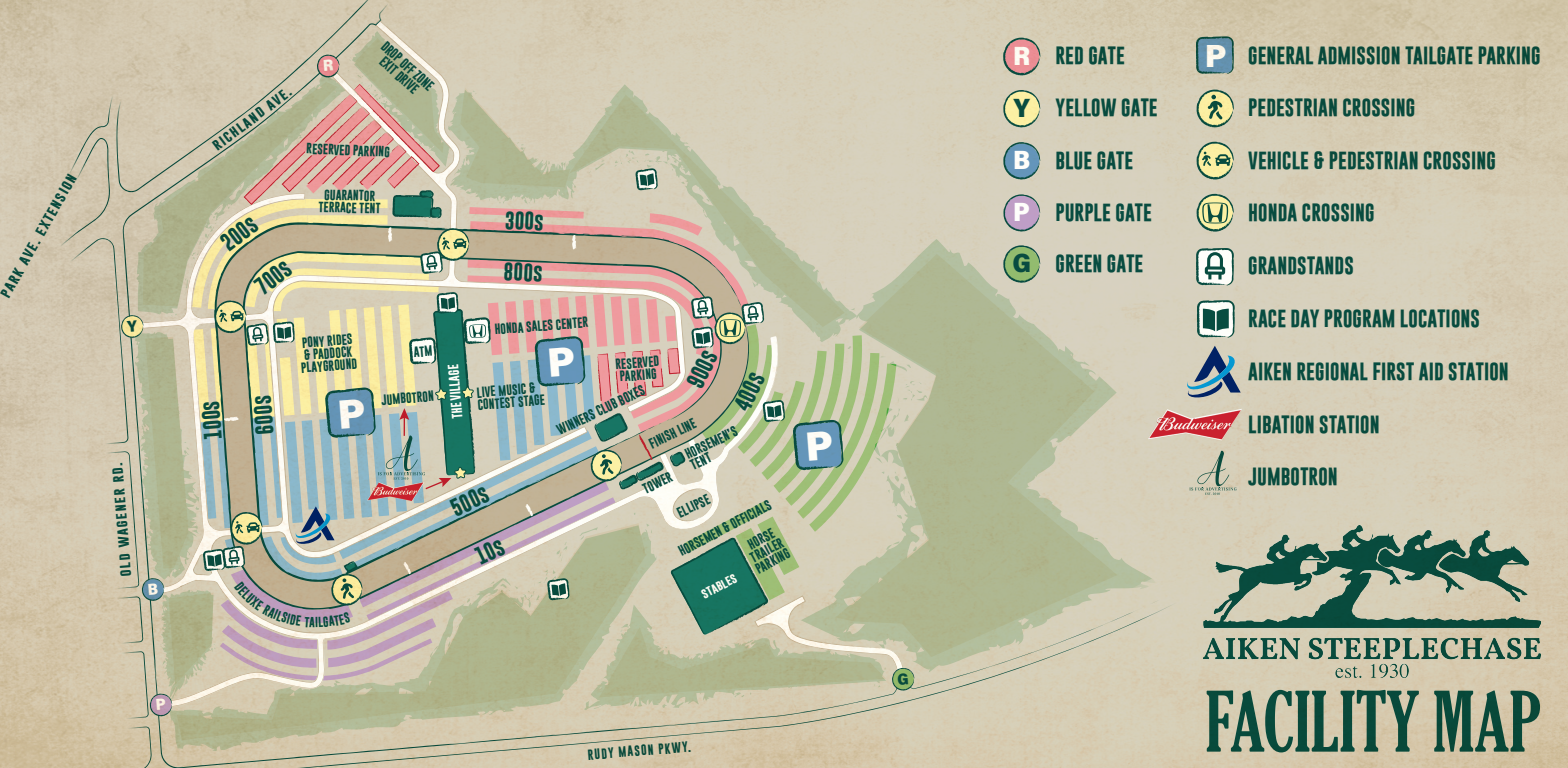 Patron Parking ($40 each) is sold only at the Aiken Steeplechase Office.