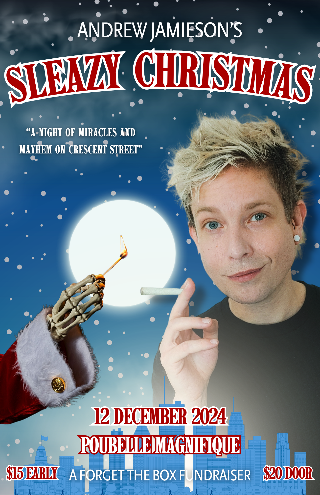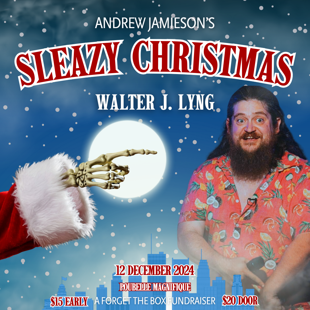 So, if you're tired of the same old holiday schmaltz and ready for a Christmas show that's as twisted as a tangled string of Christmas lights, grab your ugliest sweater, leave your holiday spirit at the door, and join us for Andrew Jamieson’s Sleazy Christmas III. We'll provide the cynicism, the satire, you bring your sense of humor and a willingness to embrace the dark side of the holidays. Get your tickets now, because this is one Christmas party you won't want to miss... unless you actually enjoy fruitcake and caroling. In which case, you’re not invited.
