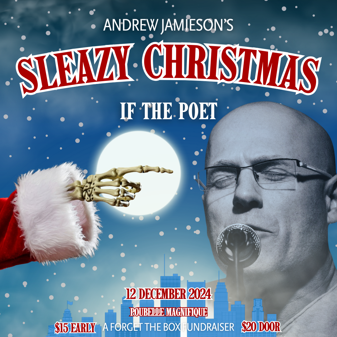So, if you're tired of the same old holiday schmaltz and ready for a Christmas show that's as twisted as a tangled string of Christmas lights, grab your ugliest sweater, leave your holiday spirit at the door, and join us for Andrew Jamieson’s Sleazy Christmas III. We'll provide the cynicism, the satire, you bring your sense of humor and a willingness to embrace the dark side of the holidays. Get your tickets now, because this is one Christmas party you won't want to miss... unless you actually enjoy fruitcake and caroling. In which case, you’re not invited.