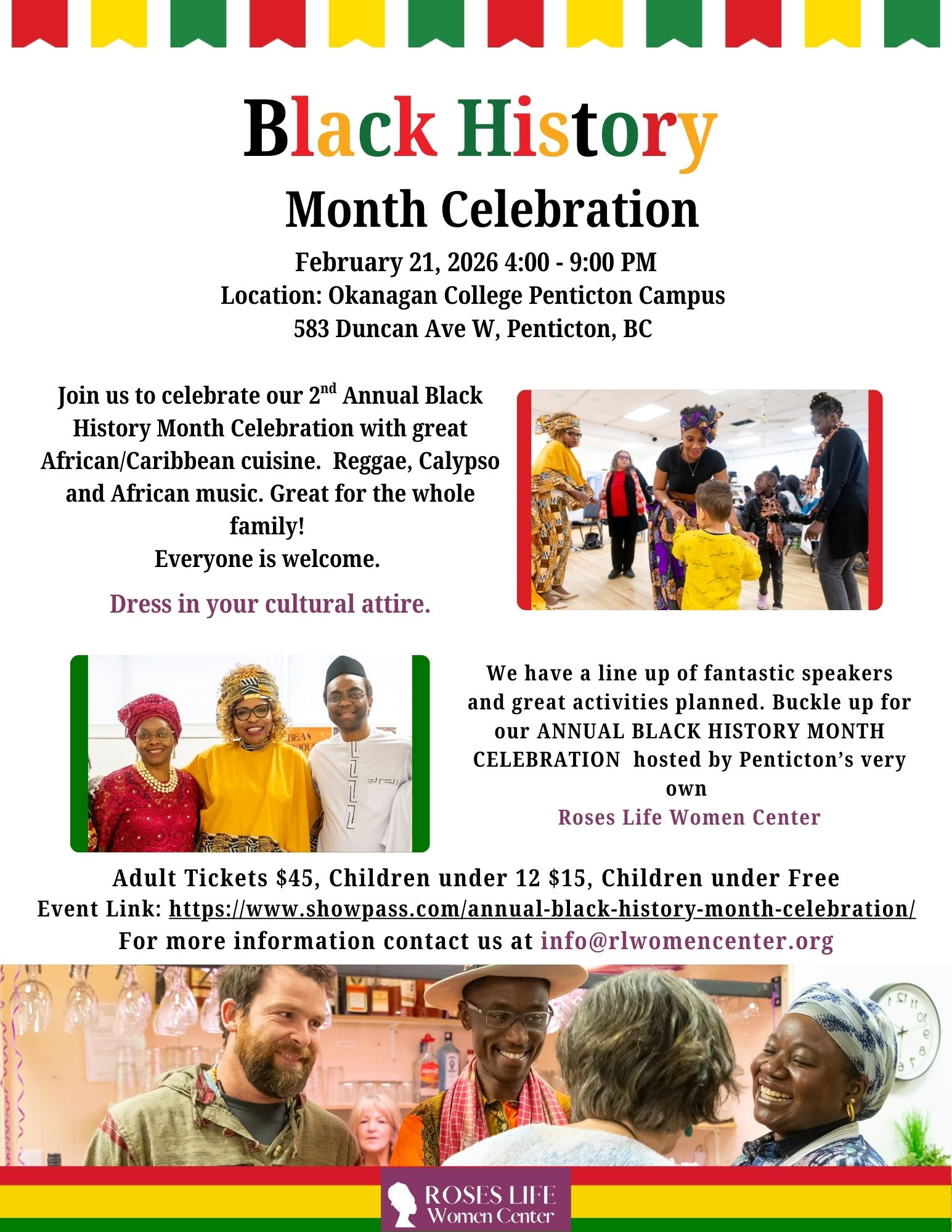 We have a line up of fantastic speakers and great activities planned. Buckle up for our ANNUAL BLACK HISTORY MONTH CELEBRATION hosted by Penticton’s very own Roses Life Women Center.