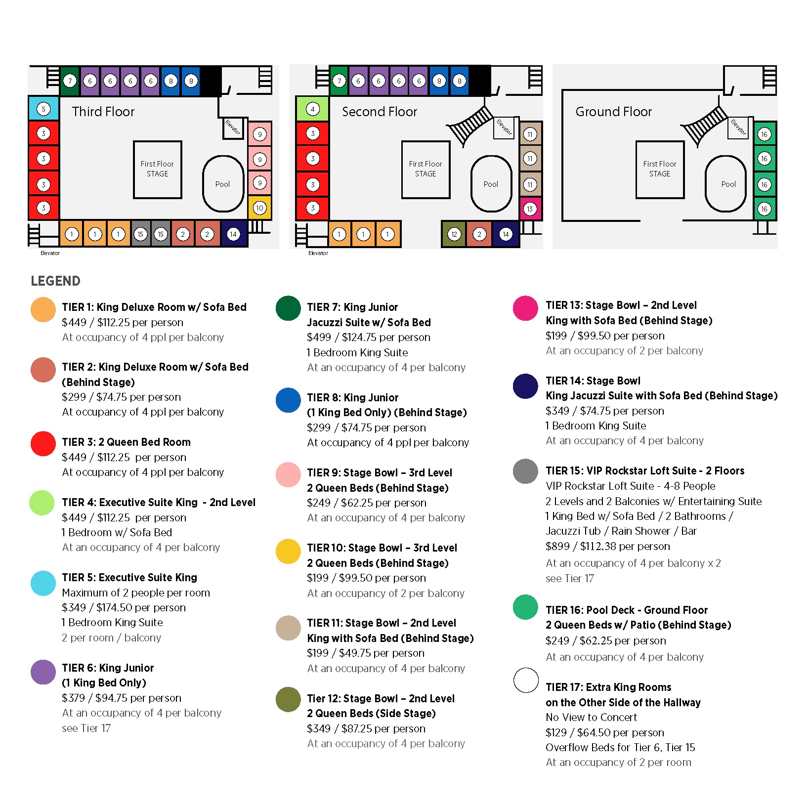 Tier 15 ------------------------ 5:00-7:00 – (Rockstar Loft Suites – VIP Concierge Check in Times)
