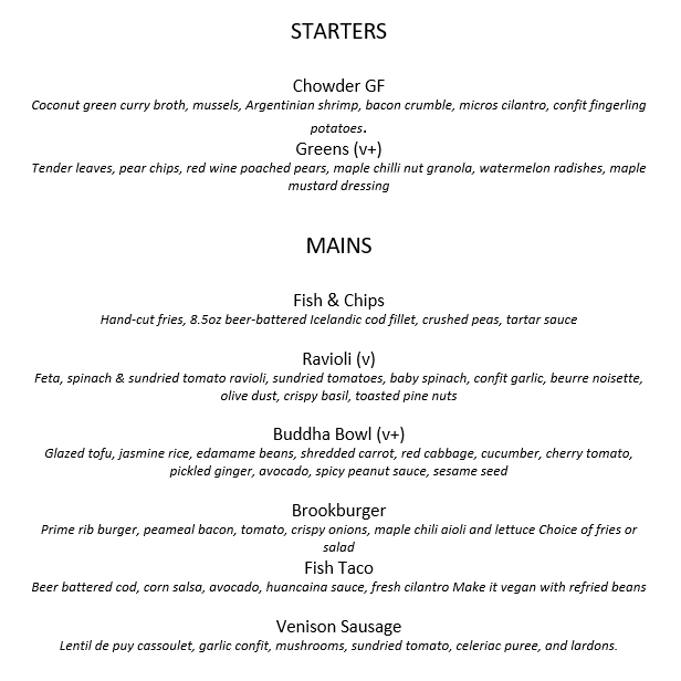 Two course seated meal including your choice of one appetizer and one main entrée (sample menu below)