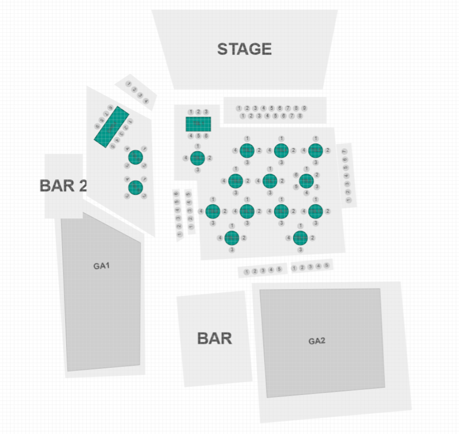 Cabaret set up (tables or individual seating available as well as standing options).