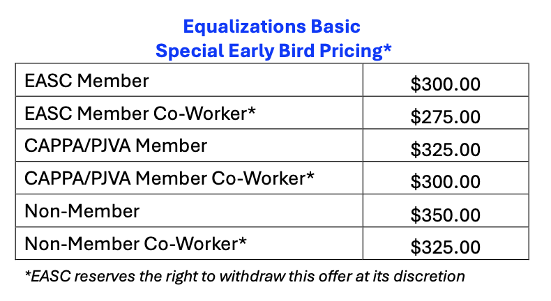EASC is once again offering an Early Bird Special Pricing Option for multiple registrations from the same company! When registering, add your co-workers to your order at a reduced price. Co-workers of EASC/CAPPA/PJVA members do not need to be an association member.
