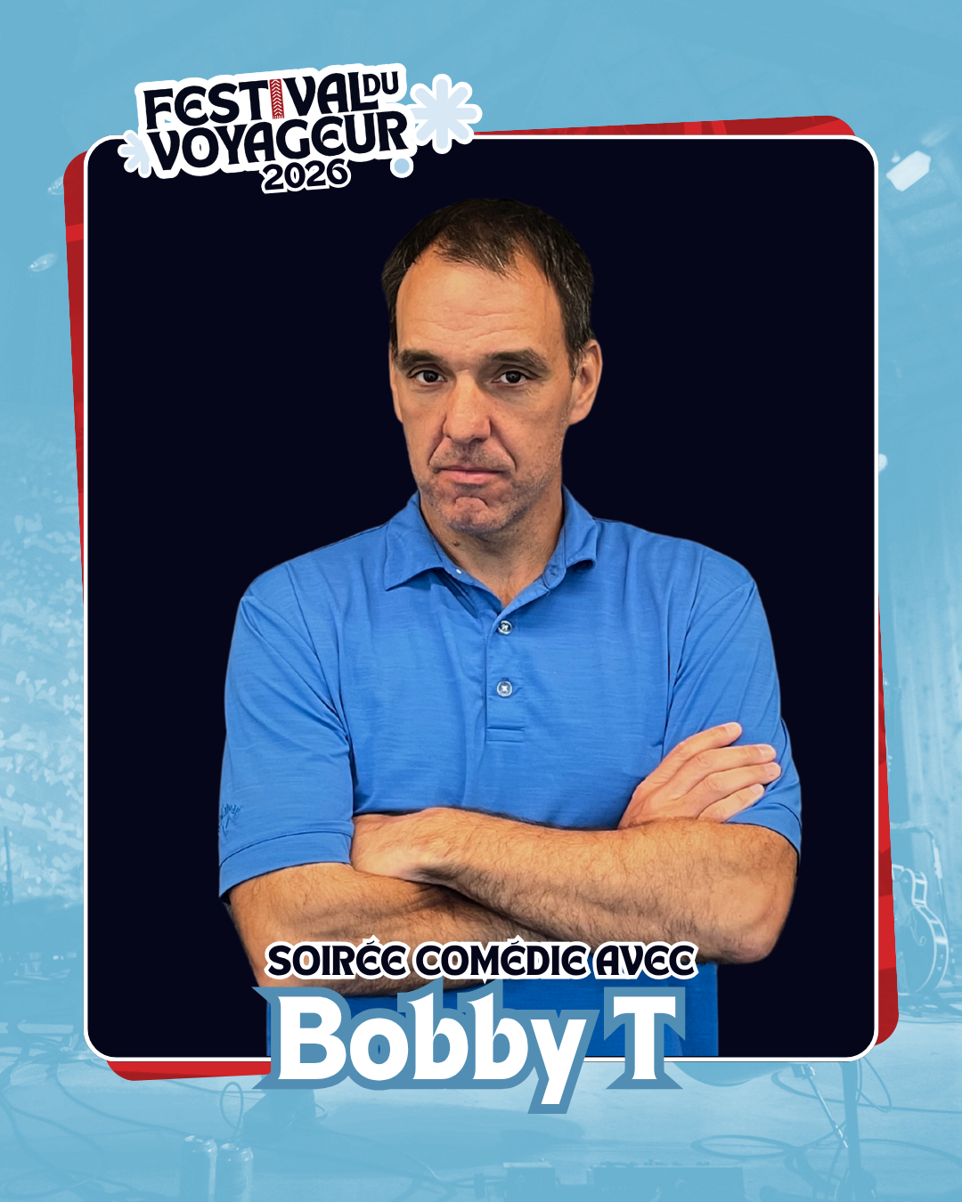 Humoriste franco-manitobain, Bobby T s’est fait remarquer au cours des deux dernières années sur la scène du stand-up avec son style vif, honnête et sans filtre. Après des spectacles partout au Manitoba et une tournée estivale au Nouveau-Brunswick en 2025, il revient au Festival du Voyageur avec un humour qui marie auto-dérision, observation et fierté francophone. Son approche : dire tout haut ce que tout le monde pense tout bas… mais avec un sourire.