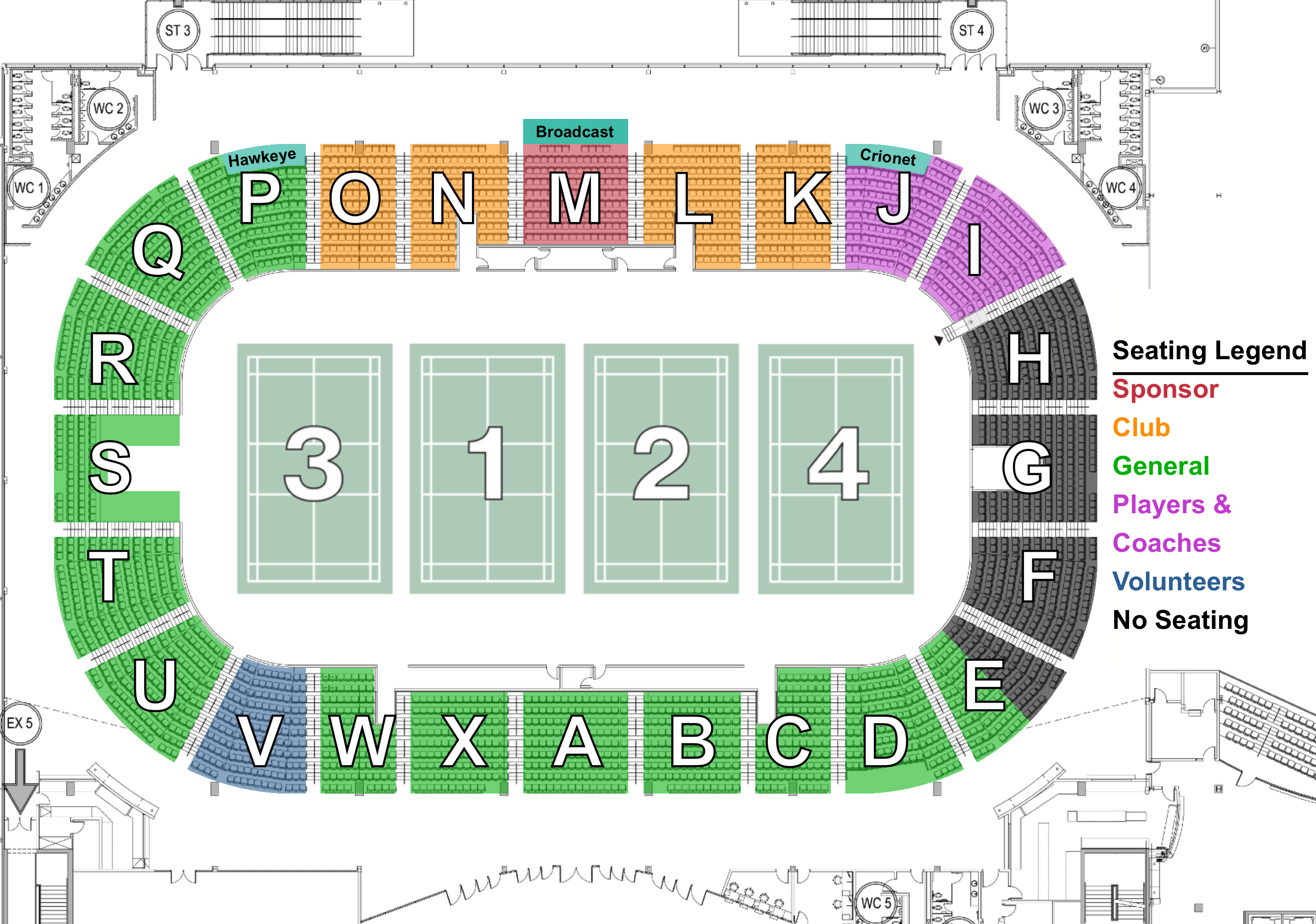 The WinSport Arena features stadium seating surrounding the four competition courts, plus a full concession area offering pizza, hot dogs, beverages and more!