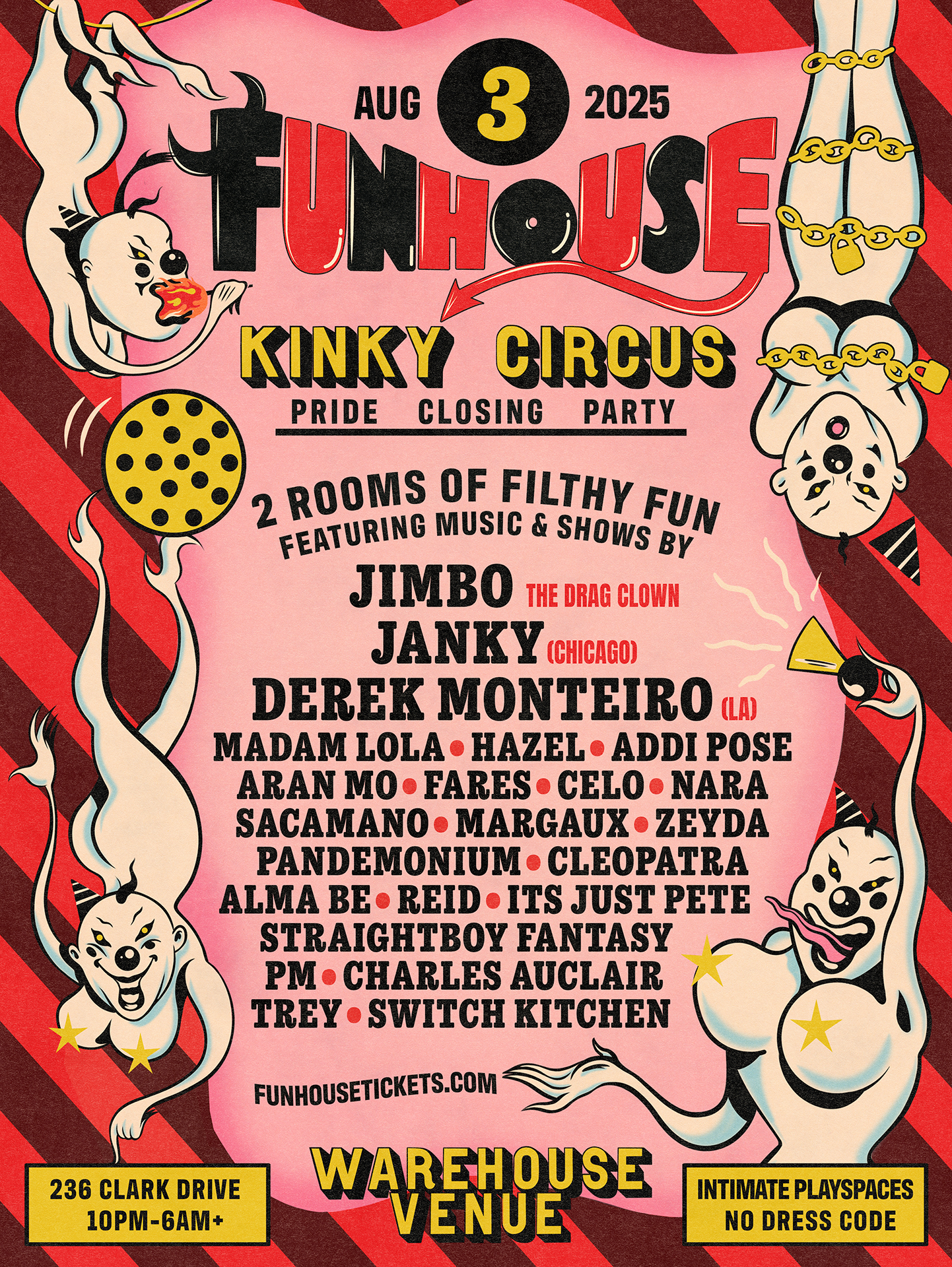 The House Of Lola, Restricted Entertainment & Sin City are teaming up to bring you a Queer & Kinky Pride Closing Party like no other! This is where Circus meets Sexy ... where Fantasy meets Fire ... featuring local and international performers ... including the one and only drag clown herself, JIMBO, plus DJ headliners JANKY from Chicago and DEREK MONTEIRO from Los Angeles!