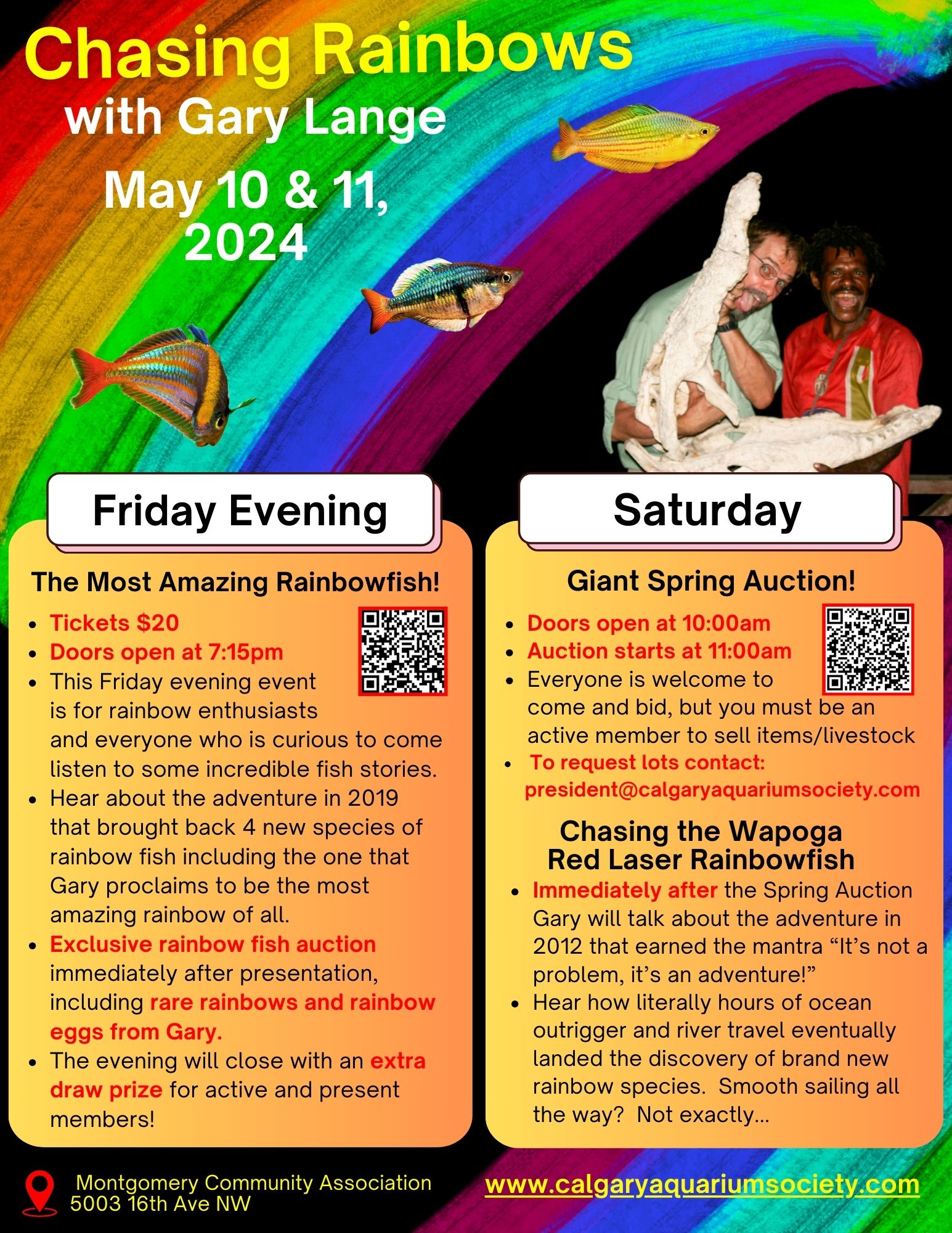 The Calgary Aquarium Society is excited and fortunate to host Gary Lange as our honored guest speaker on May 10th where he will be giving his presentation "The Most Amazing Rainbowfish!".