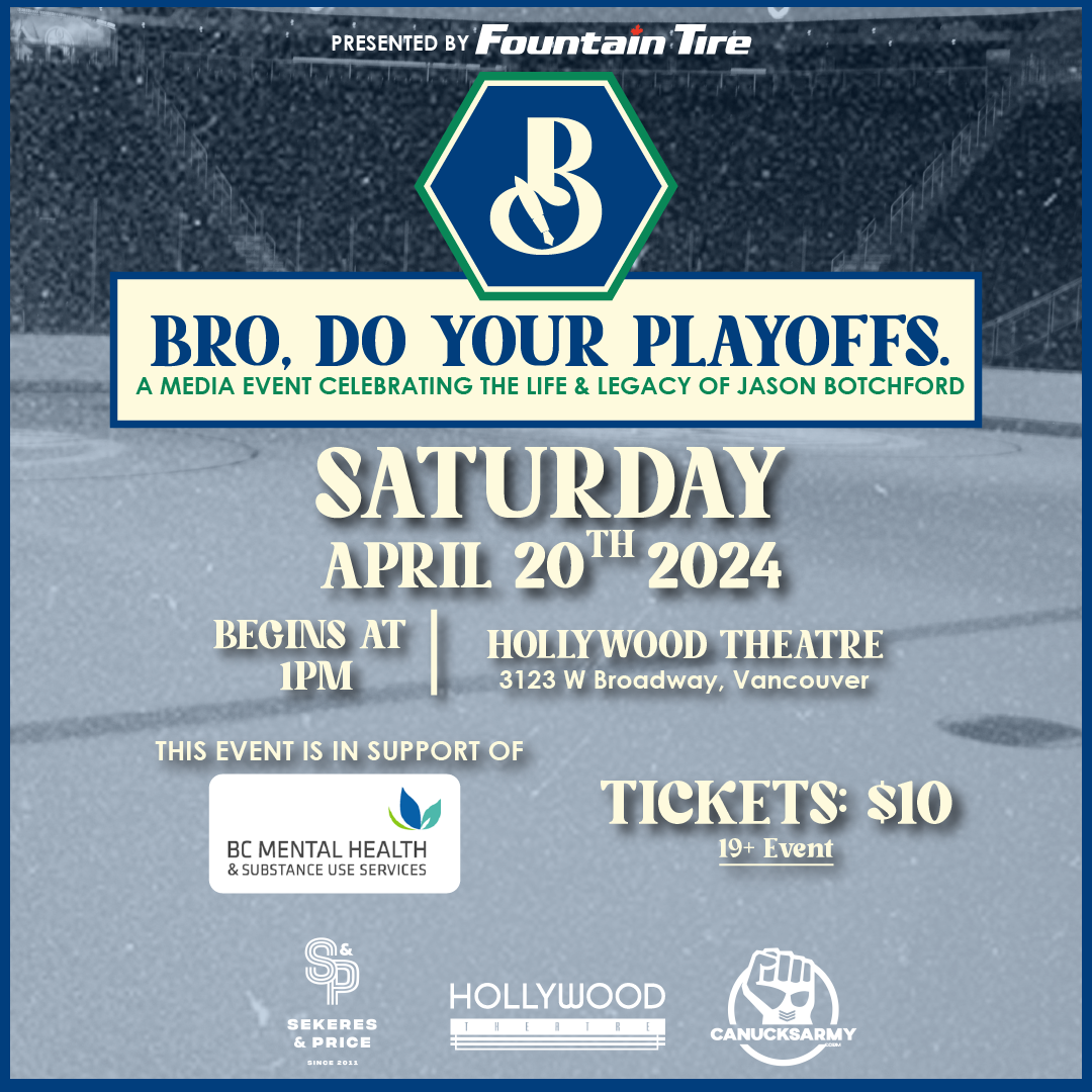 Join us Saturday, April 20th between Noon-5pm at Hollywood Theatre (3123 West Broadway, Vancouver) as friends and former colleagues remember beloved reporter Jason Botchford, whom we lost five years ago.