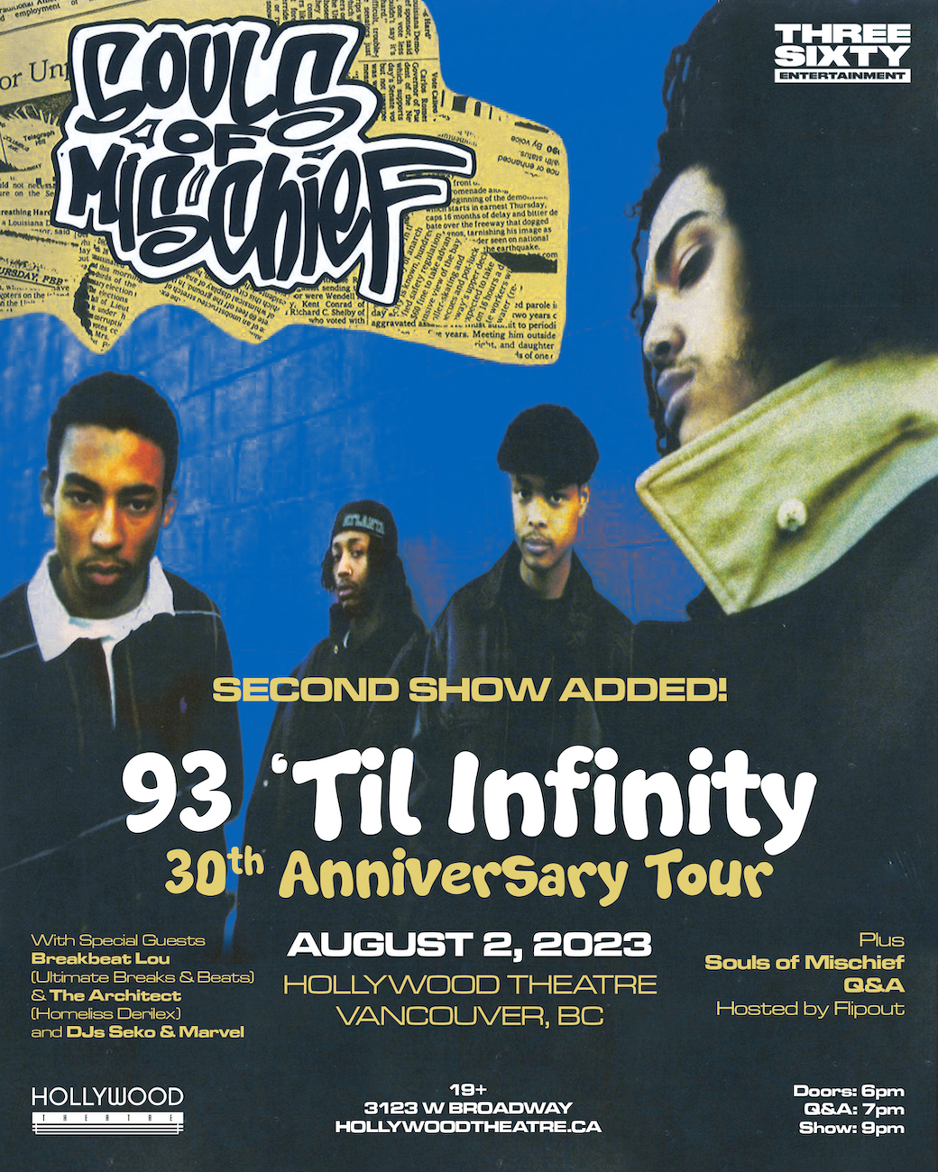 Not only have we added a second Souls Of Mischief show, but both shows now include a Q&A session with Souls Of Mischief talking about their career, and how they got from 93 'Til Infinity to now!