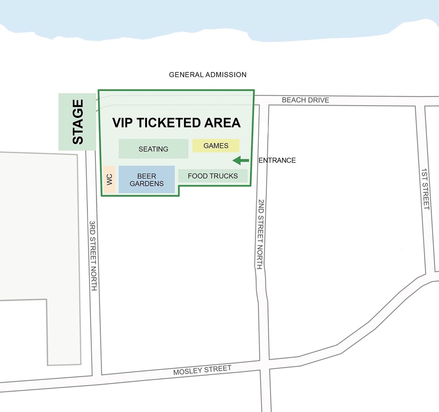 TIP: For the best experience, bring your friends and family to Beach Areas 1 & 2, debit/credit only in the Side Launch Brewing Company Beer Garden.