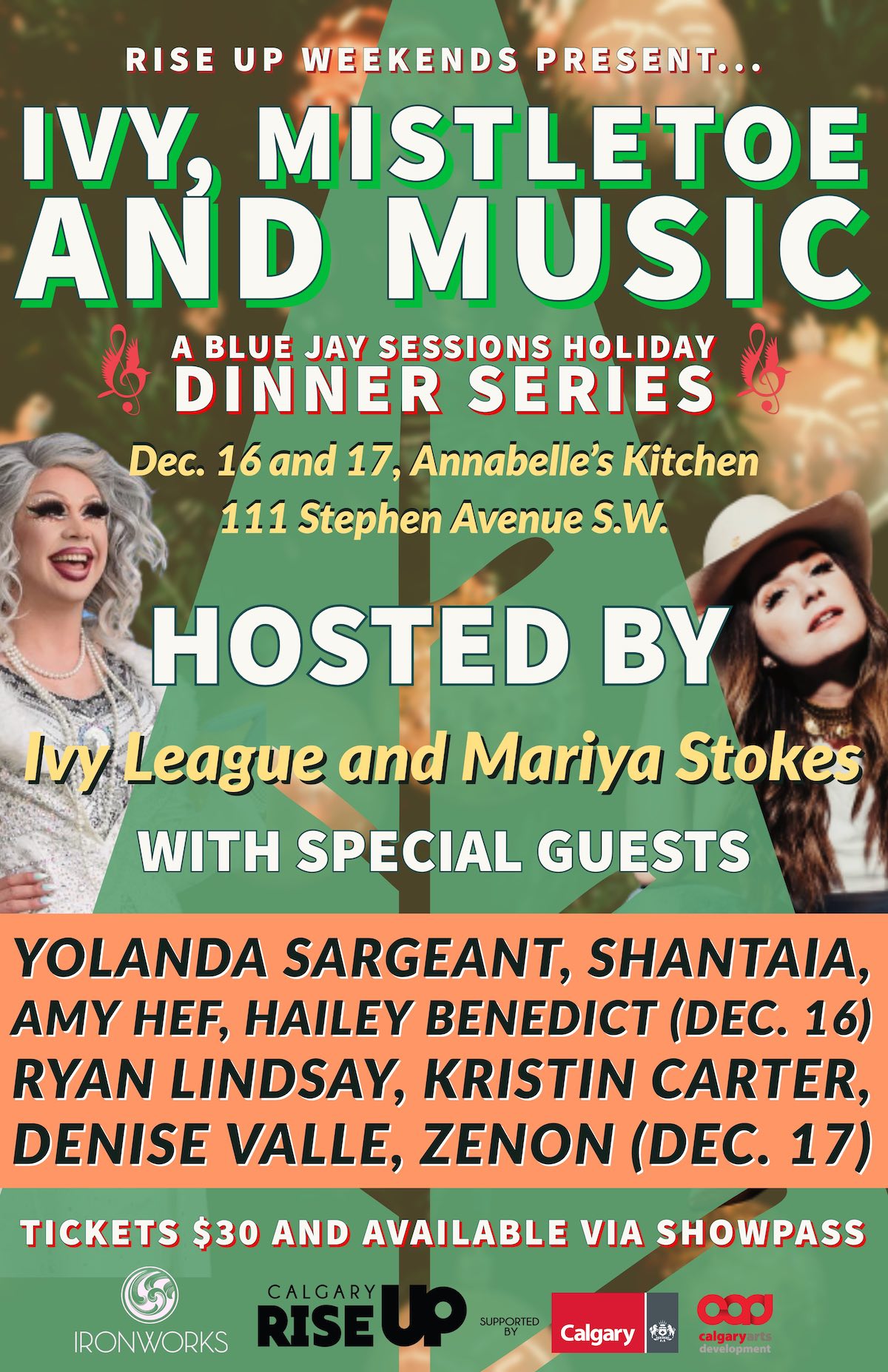 Join us at the beautiful Annabelle's Kitchen in downtown Calgary for a special holiday dinner series hosted by drag queen Ivy League and award-winning country singer Mariya Stokes.