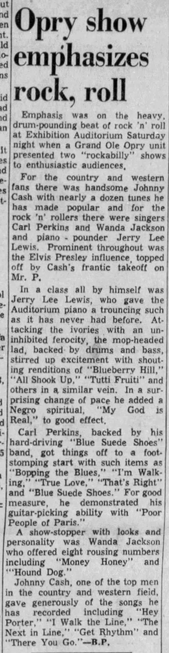 “More than one music fan…have wished for a time machine…to wedge into those packed auditoriums on the vast plains and in the Canadian Rockies…to see Johnny Cash [& The Rockabillies] young and raw and wild, singing into Art Deco microphones that looked like something that shook loose off the hood of an Oldsmobile…” – Rick Bragg