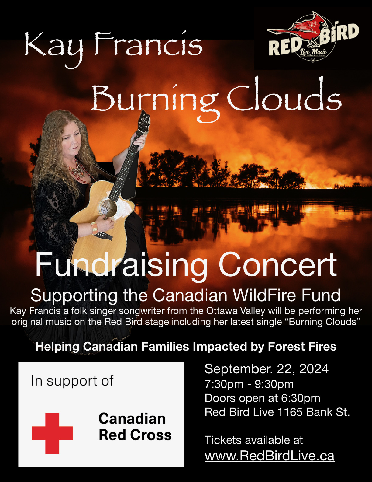 Kay Francis live at Red Bird is Kay’s first full concert since her first single was released and she is donating 100% of her revenue from this concert to the Canadian Wildfire Fund to help the families in Jasper.