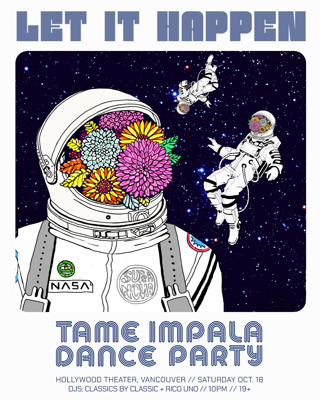 We're celebrating the music of Tame Impala (and more) with DJs Classics by Classic + Rico Uno playing all the best psychedelic rock, psychedelic pop, hypnogroove, synth-pop, indie disco, and indie electronic jams by: