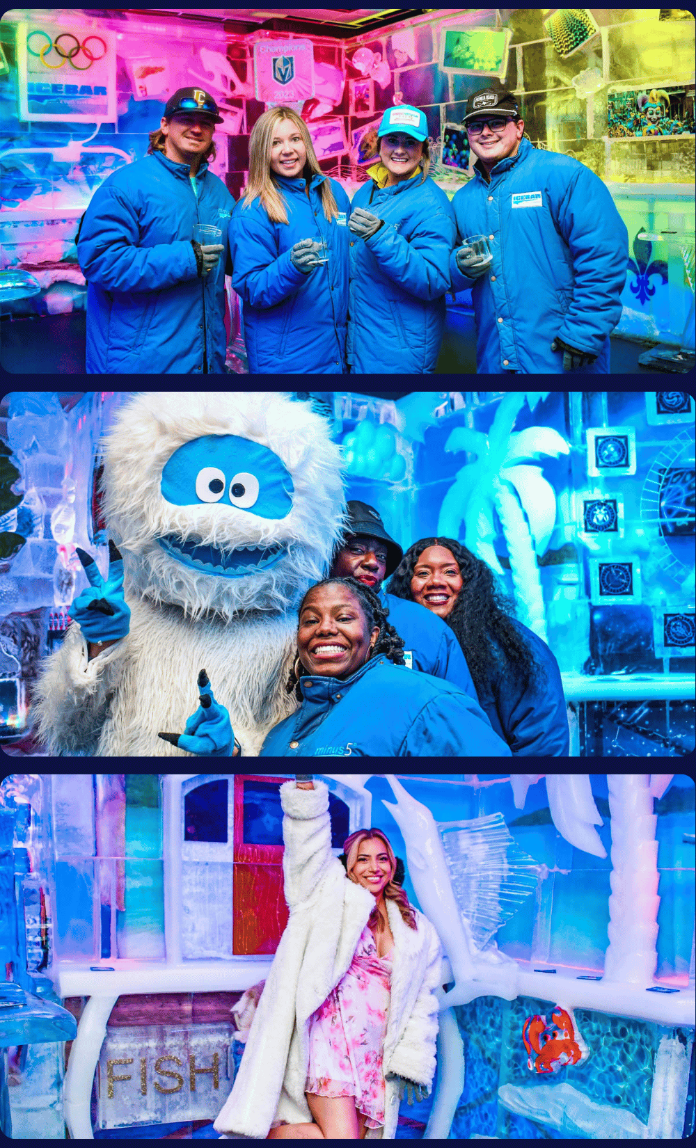 Inside the 23°F (-5°C) space, you’ll explore a breathtaking environment made from 90 tons of pure ice, featuring frozen furniture, intricate sculptures, and ever-changing designs. Enjoy a vibrant nightclub-style atmosphere with upbeat music as you sip your favorite drinks and capture unforgettable moments with roaming professional photographers.