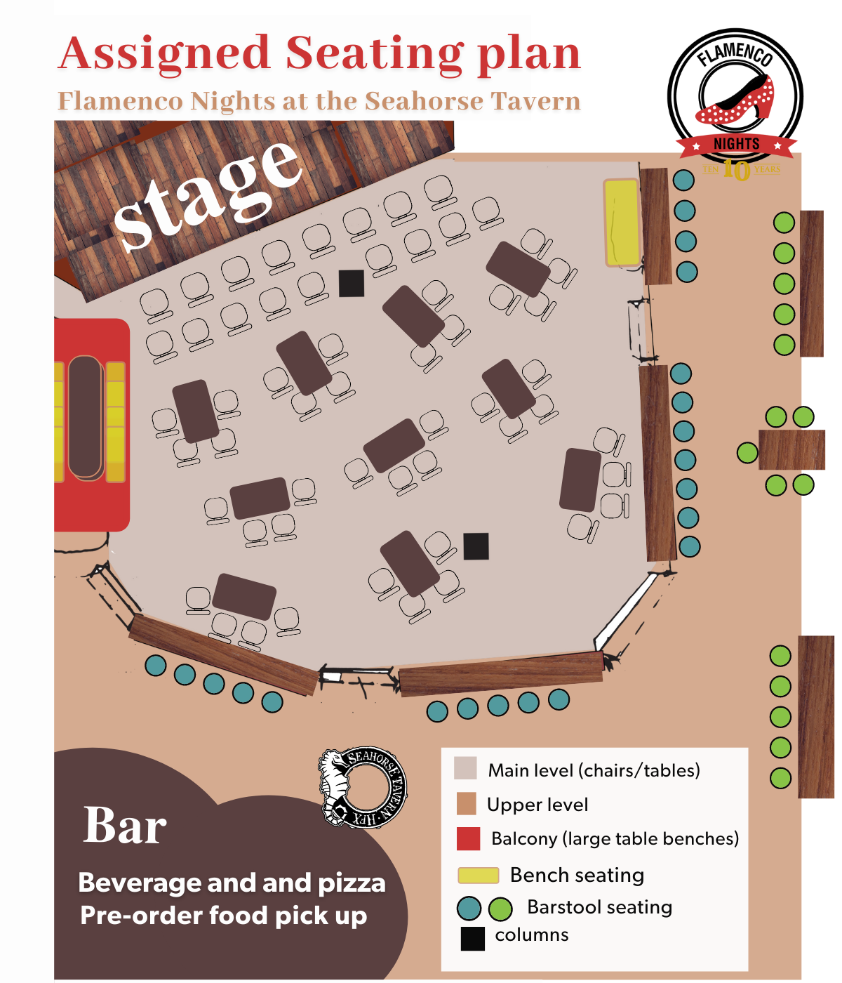 There will be a takeout counter next to the bar, where items such as pizza slices can be purchased on the night of the show.