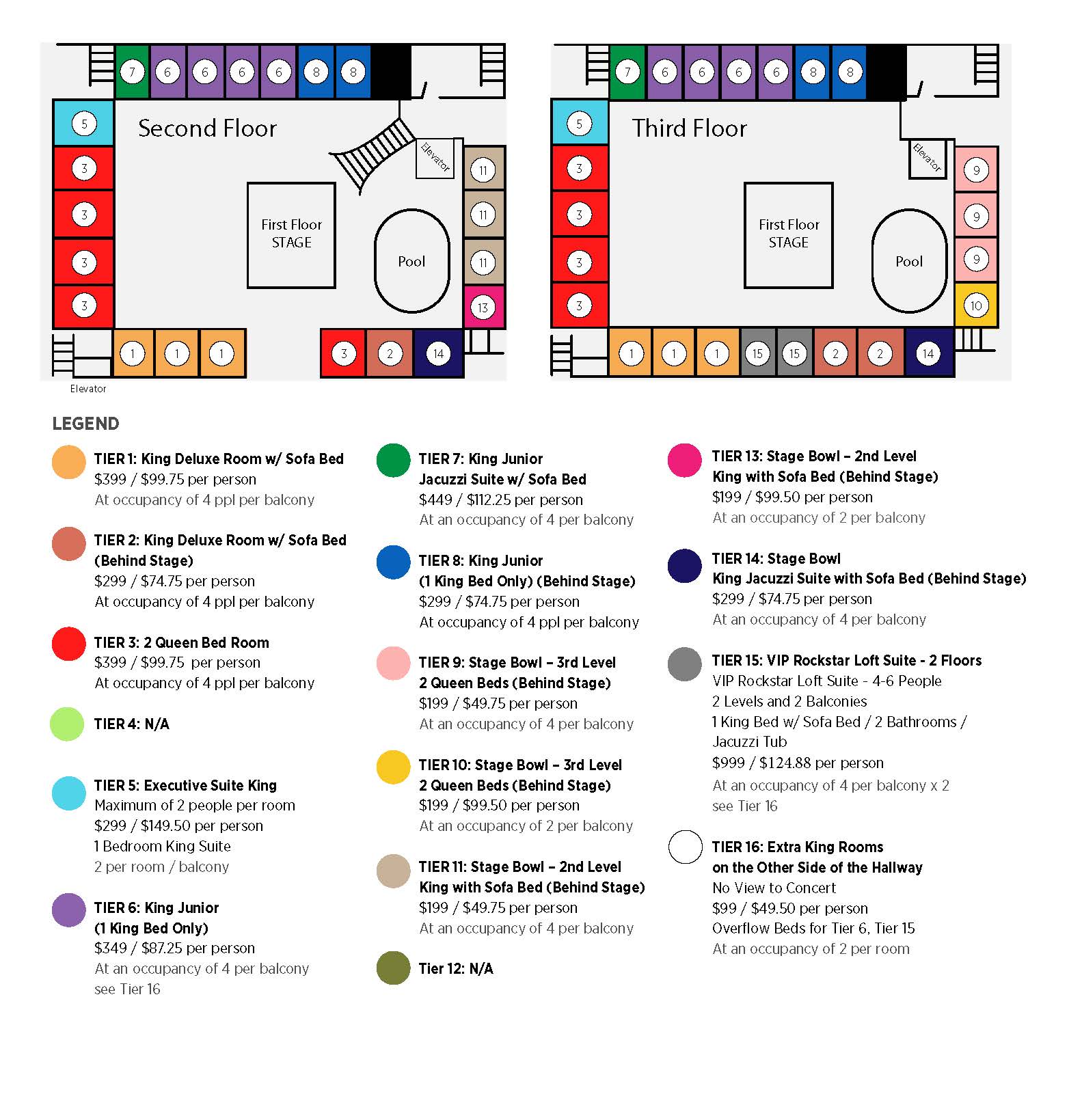 Tier 15 ------------------------ 5:00-7:00 – (Rockstar Loft Suites – VIP Concierge Check in Times)