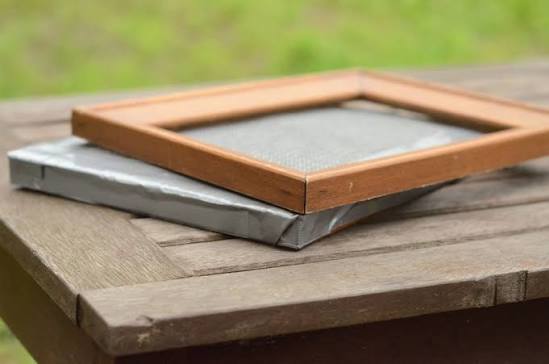 The first step to papermaking is making a Deckle. A deckle is a waterproof form that makes uniformed shapes for your paper pages.