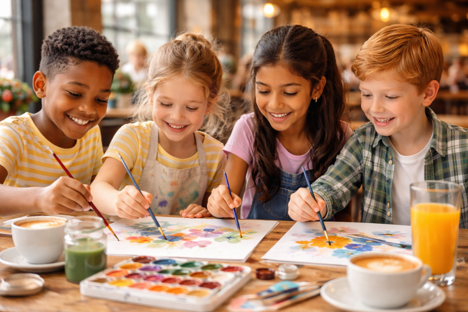 This class is a fantastic way to spend an evening. Doors open at 4, and we have until 9 to wrap up our projects, giving you the flexibility to arrive and leave when you like and create without feeling rushed. The ticket price is for both you and your partner. You can pick from a variety of images with step-by-step instructions or collaborate with the teacher to design your own masterpiece. Work on individual paintings, team up for one piece, or create two works that complement each other. The class offers two fun options—watercolor or acrylic—both perfect for beginners who just want to paint and enjoy themselves.