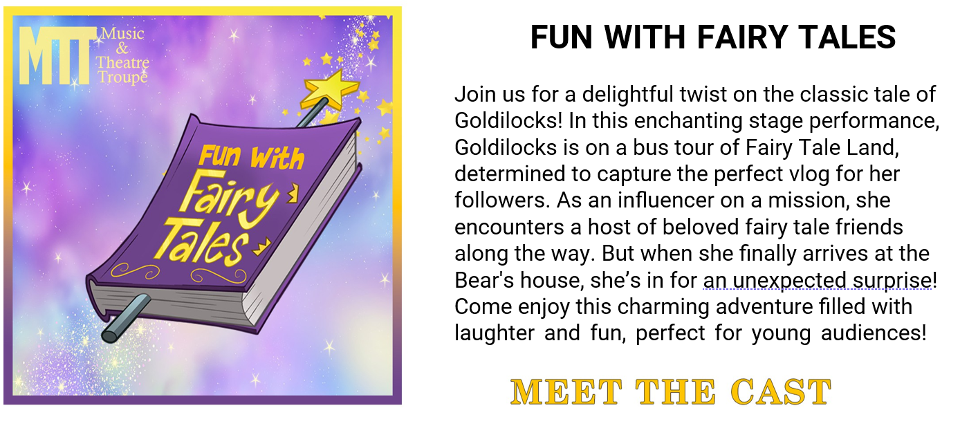 Then, hop on a bus with Goldilocks as she takes a fun tour of Fairytale Land, revealing the true story behind her adventure with the Three Bears. Full of laughter and joy, this show is perfect for young audiences.
