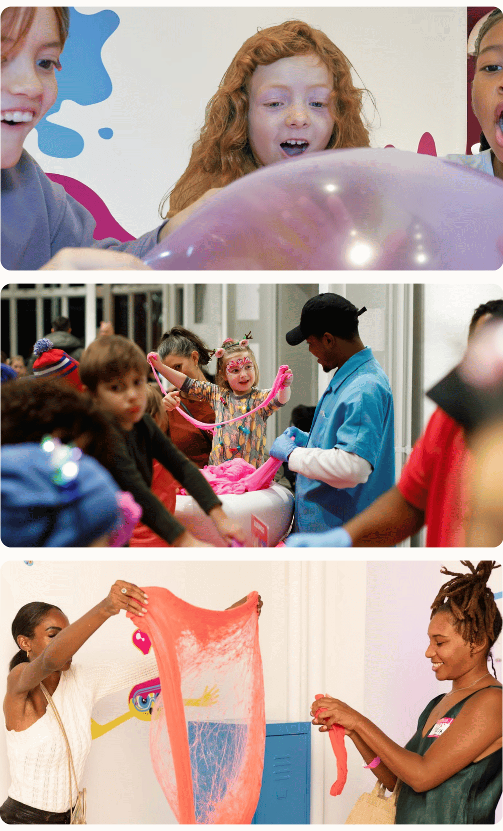Explore innovative sensory experiences, including squishy slime, kinetic sand, CGI light shows, and glow-in-the-dark visual displays. Customize your own slime masterpiece at the impressive 150-foot DIY bar, where creativity has 4,320,000 possibilities!