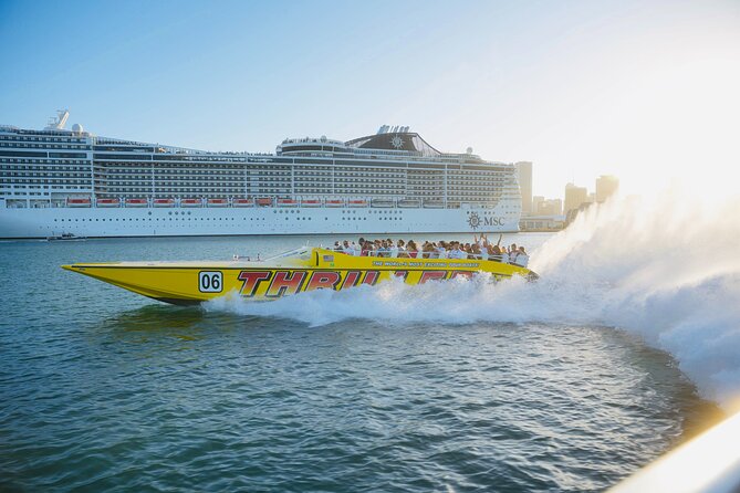 This 45-minute adventure whisks you through the scenic waters of Biscayne Bay, zooming past Star Island’s celebrity estates and the luxury homes of Fisher Island. Your expert captain will share stories about Miami’s famous residents and the area’s unique culture. Along the way, cruise by South Beach’s Art Deco mansions and the lively shores where Miami locals soak up the sun. Get ready for high-speed fun, breathtaking views, and photo ops of Miami’s skyline.