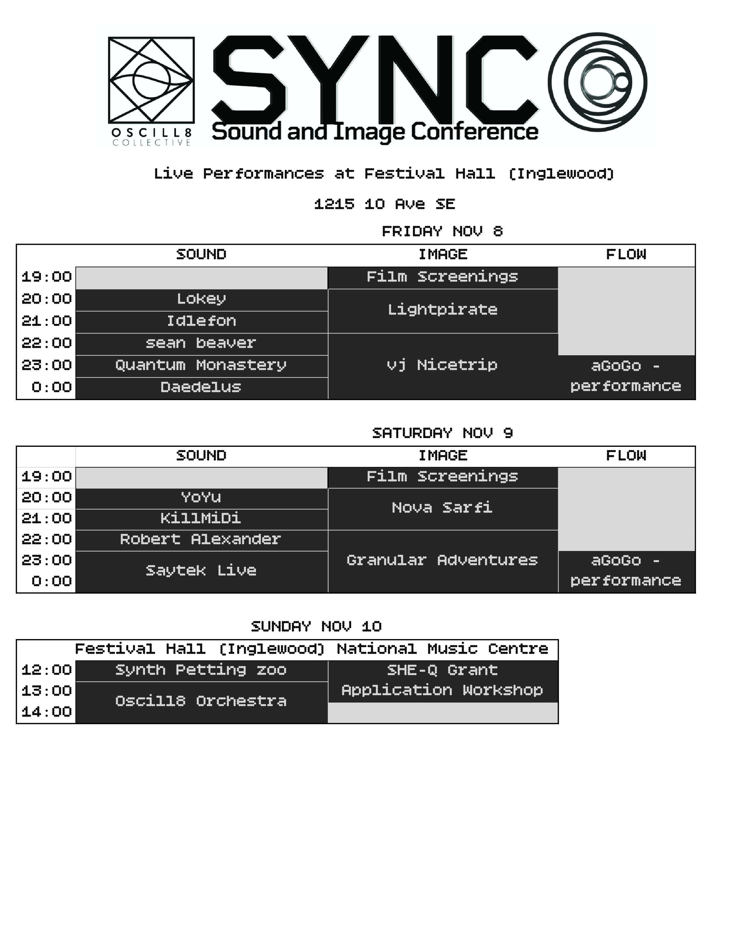 All ticket sales for Oscill8 Collective events, including SYNC, are final. Unfortunately, we do not offer refunds for purchased tickets. However, if you are unable to attend, tickets are transferable, and you may pass yours on to another attendee. Our events support live artists and essential production costs, making each ticket crucial to creating a powerful experience for the community. We appreciate your understanding and support as we work together to build a thriving artistic ecosystem.