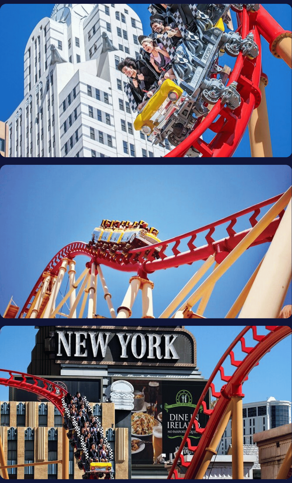 The coaster’s unique design is inspired by the iconic New York City taxi cabs, and as you twist and turn, you’ll get incredible views of The Strip and even the Raiders stadium. Prepare to scream, laugh, and hold on tight as you fly through barrel rolls, upside-down loops, and sharp turns.
