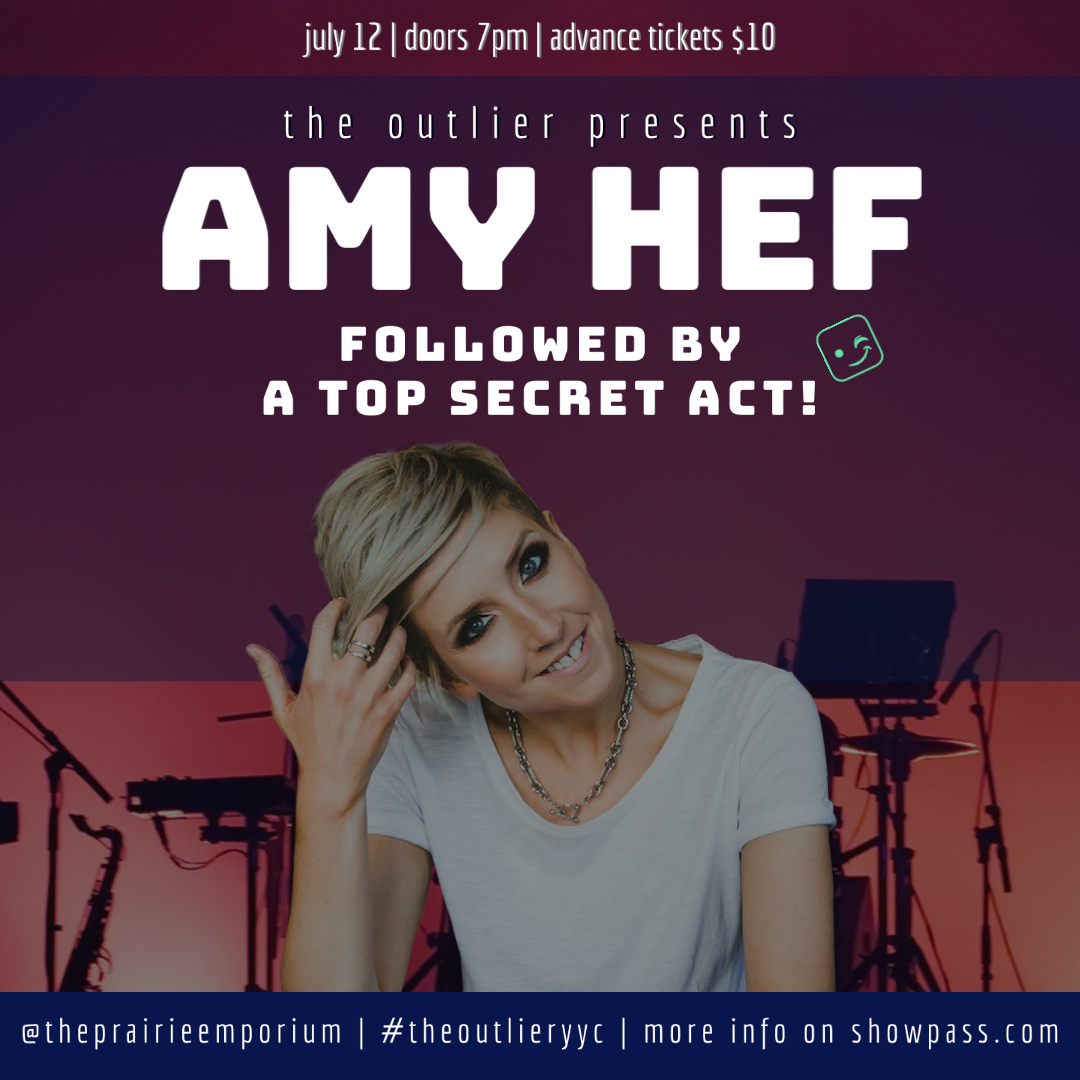 Next, the captivating, award-winning singer Amy Hef will get the crowd going with her signature high energy performances at 8PM followed by our "top secret" band at 9:30PM!