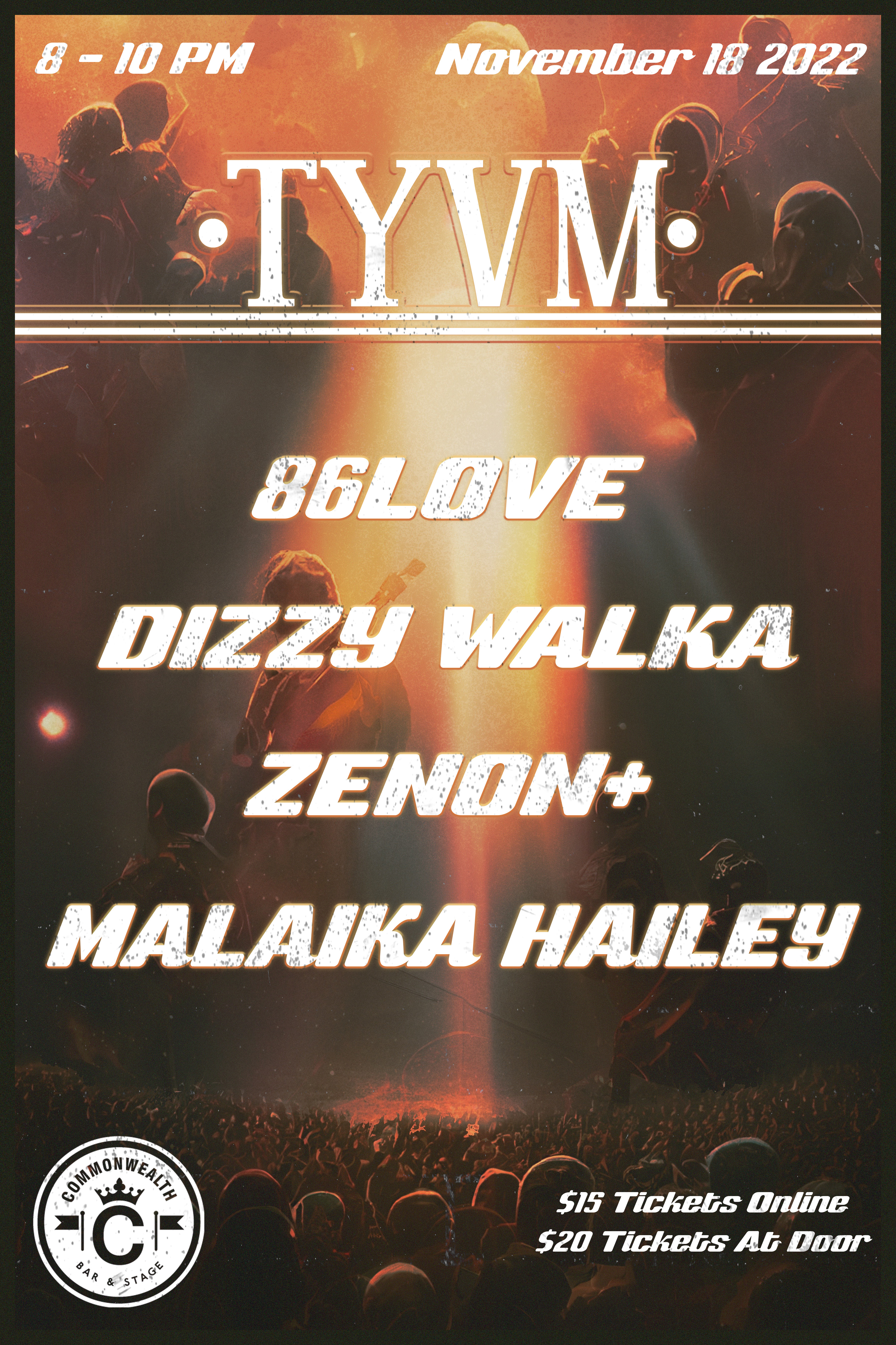 Showcasing some of Calgary's most poppin' artists. Experience 'TYVM' on November 18th at Commonwealth. Witness the energy and talent they have to offer at this central dope location! Tickets are on sale now!