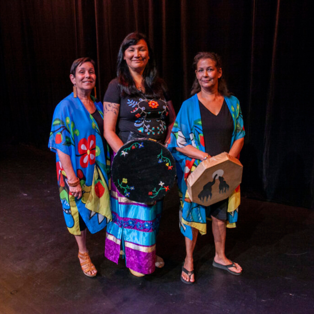 M’Girl is an ensemble of Indigenous women with stories and songs on the gifts received from Mother Earth. Though officially performing together since 2004, their personal musical histories span throughout each of their lives. Their hand drum songs blend harmonies into a contemporary style that reflects both their expertise of voice and their personal story of home. The message in the music is an emergence of cultural worldviews from the perspectives of their Metis Anishnaabe (A-nish-naw-bay) Saulteaux (sow-toe) and Mohawk backgrounds.