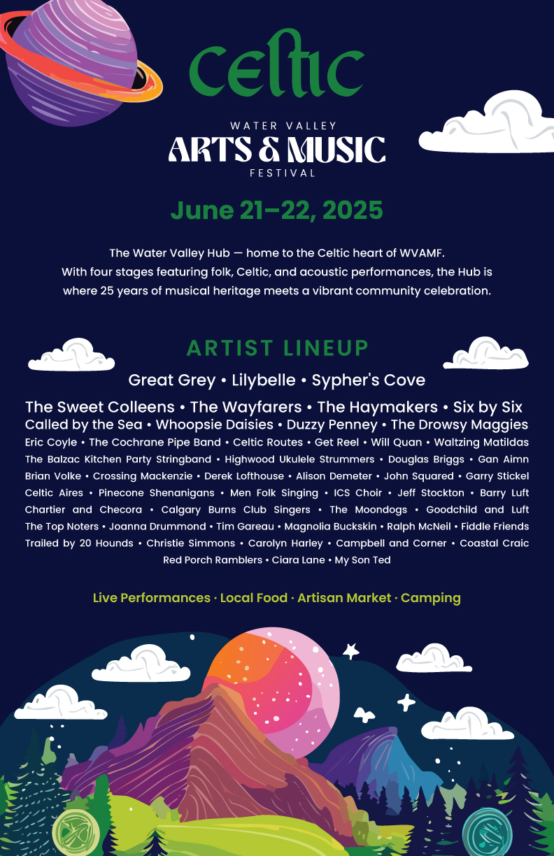 Join us for an unforgettable weekend of live music, arts, and community at the Water Valley Arts and Music Festival (WVAMF) from June 20–22, 2025. Set in the scenic foothills of Water Valley, Alberta, this multi-venue, multi-genre festival brings together top artists, artisans, and food vendors for a truly immersive experience.
